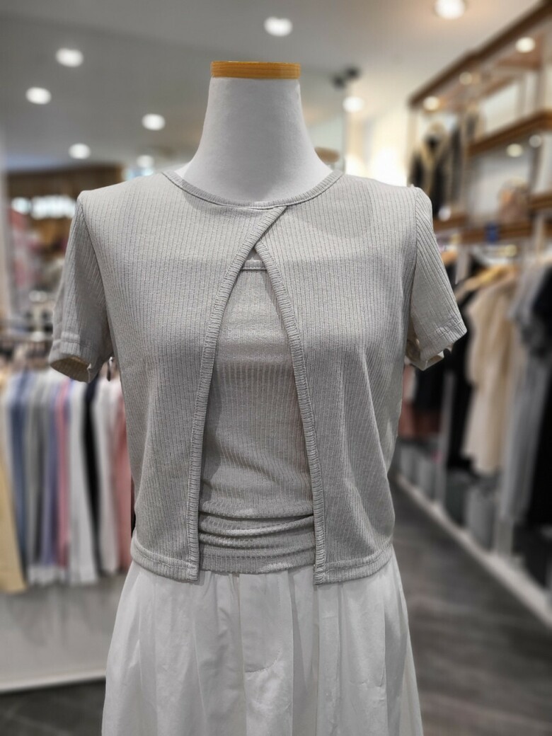 [플라스틱아일랜드] [SET]컷아웃 티셔츠+슬리브리스 탑PQ2CH501