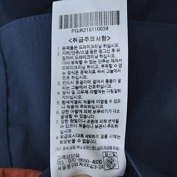 세탁방법 및 취급시 주의사항 : 본 상품 케어라벨 참조