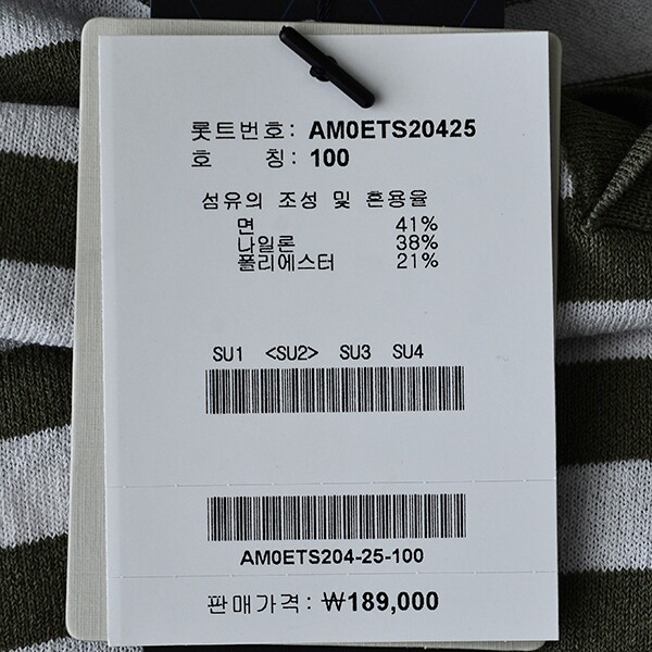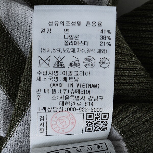| 1. 제품 소재 (섬유의 조성 또는 혼용률을 백분율로 표시, 기능성인 경우 성적서 또는 허가서) | 면41%나일론38%폴리에스터21% |