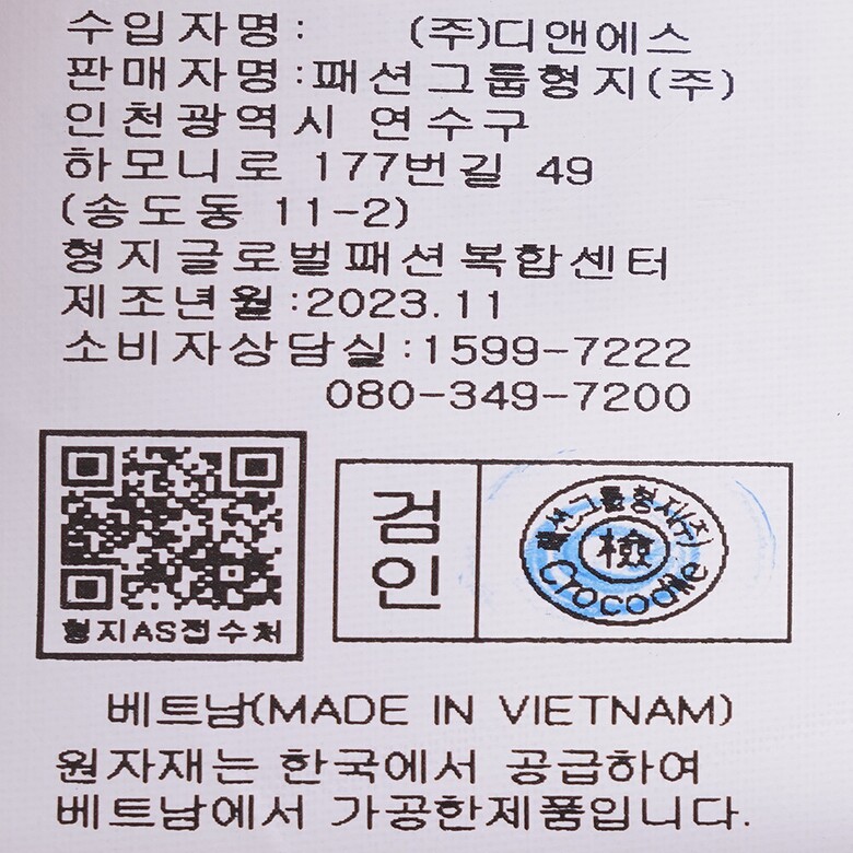 | 1. 제품 소재 (섬유의 조성 또는 혼용률을 백분율로 표시, 기능성인 경우 성적서 또는 허가서) | 상품상세참조 |