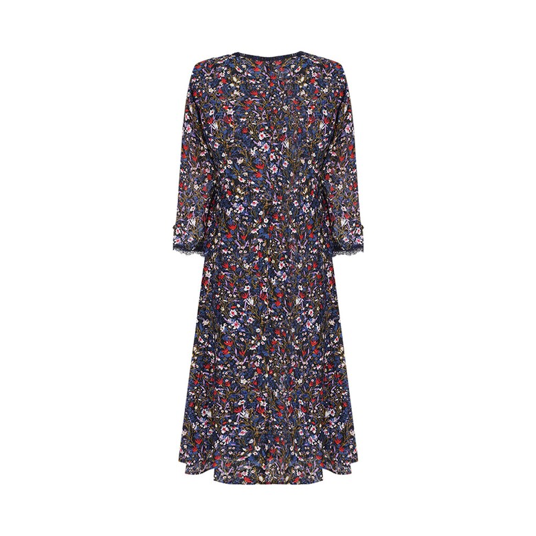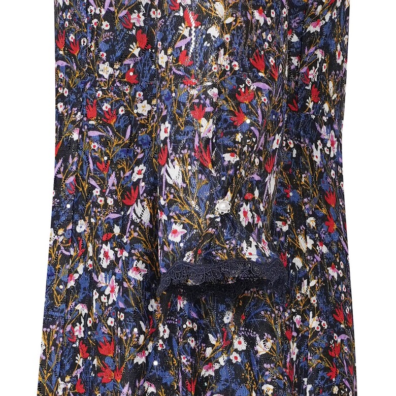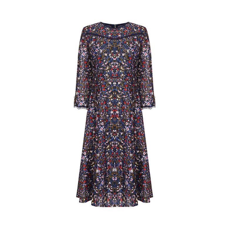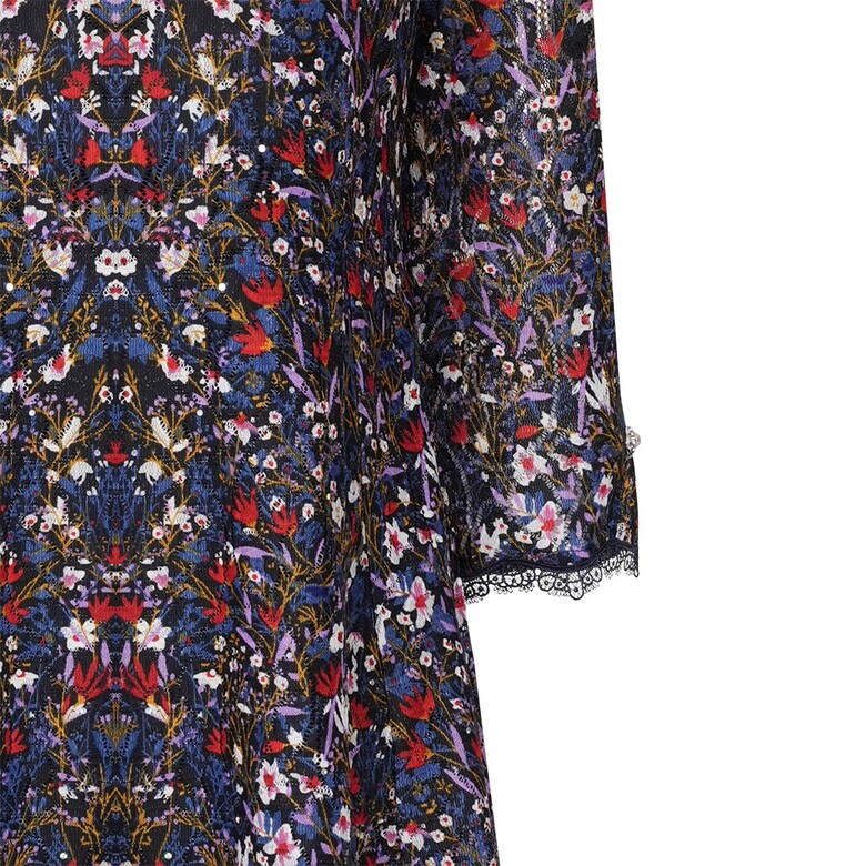 프린트 레이스 원단으로 슬림한 허리에 A라인 원피스 입니다. 포인트로 착장하기 좋은 아이템입니다.