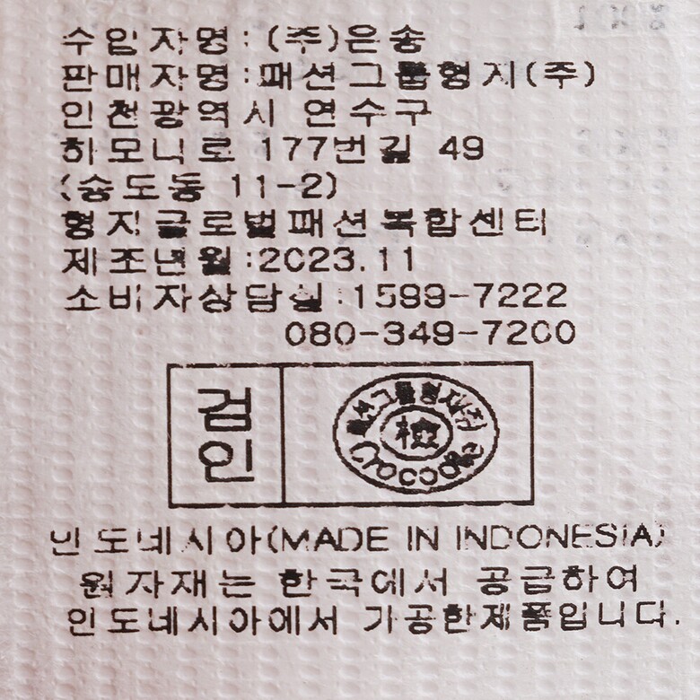 | 1. 제품 소재 (섬유의 조성 또는 혼용률을 백분율로 표시, 기능성인 경우 성적서 또는 허가서) | 상품상세참조 |