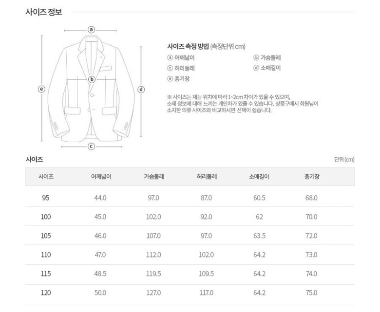 | 3. 치수 | 95,100,105,110,115 |