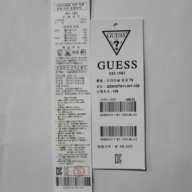 *혼용율: 겉감- 폴리에스터 76%|*| 레이온 19%|*| 폴리우레탄 5%|*| 배색- 폴리에스터 98%|*| 폴리우레탄 2%