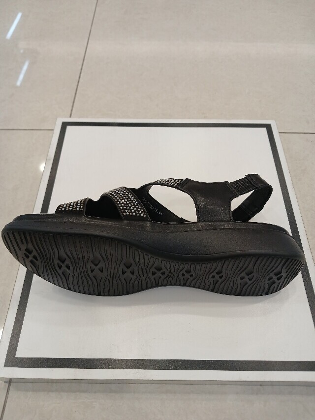 굽높이 약3cm의 높이에 천연소가죽40%와 세틴60% 소재를 사용하여 제작된 여성 초경량 샌들상품입니다