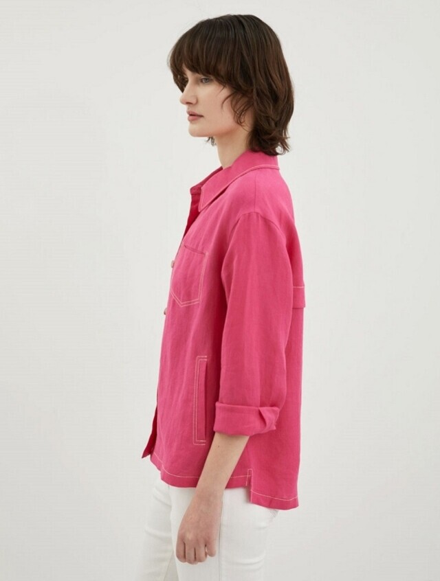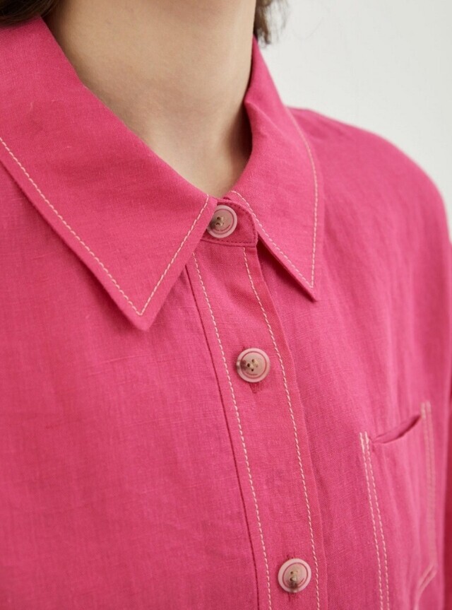 [올리비아로렌]배색 스티치 린넨 셔츠VOBNL4M3151