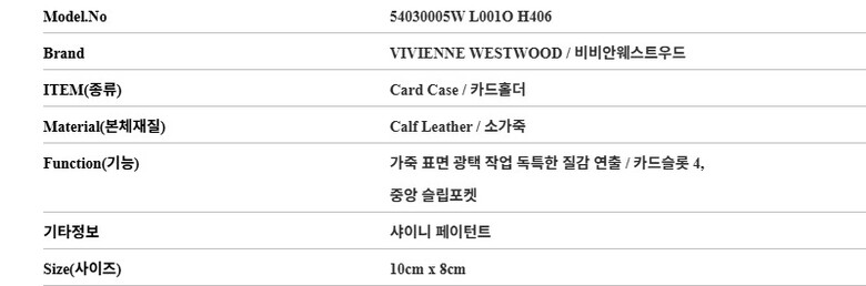 - #리본즈코리아 #54030005WL001OH406 #[명품] #비비안웨스트우드 #54030005W #L001O #H406 #샤이니 #페이턴트 #카드지갑 #여성 #지갑 #카드/명함지갑 #카드지갑홀더