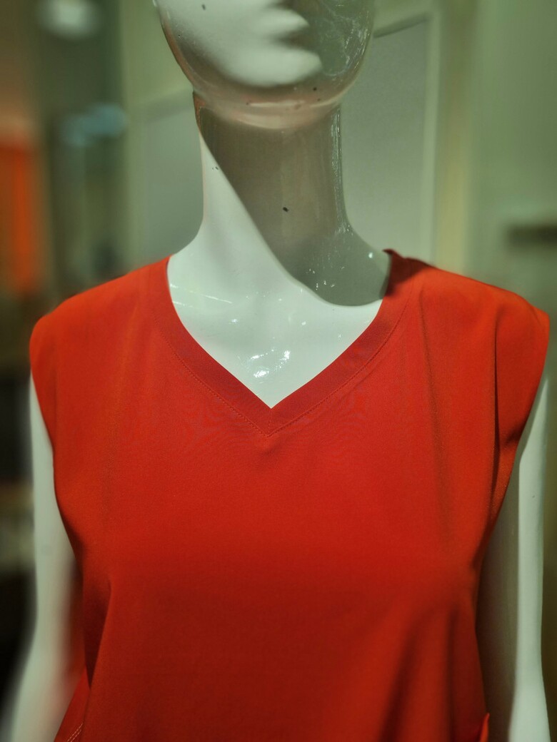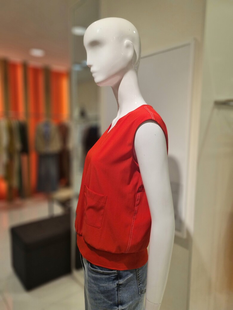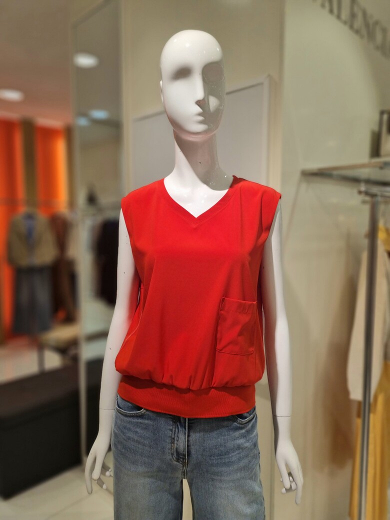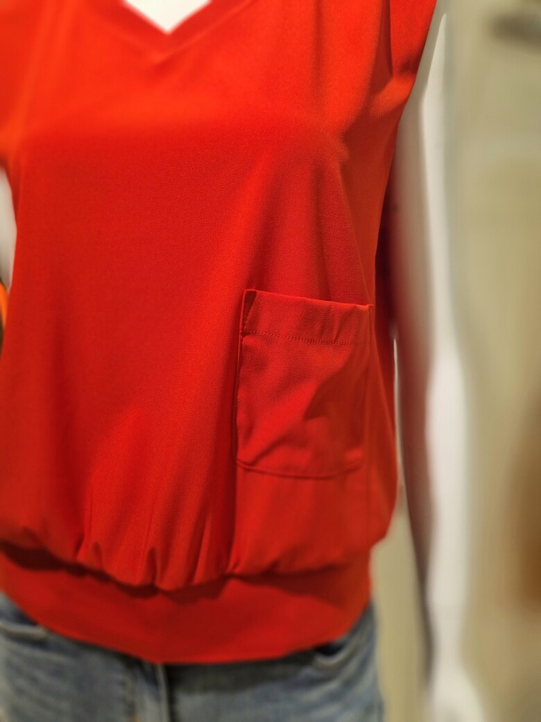 민소매에 구김없는 편한소재 한쪽포켓 포인트가있는 민소매블라우스입니다.