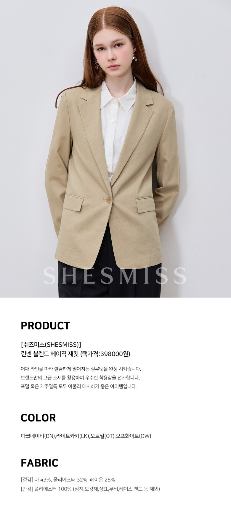 [쉬즈미스(SHESMISS)] 절제된 미니멀 린넨 블렌디드 베이직 재킷 (택가격: 398000원)