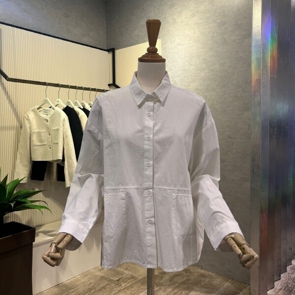 2025년 s/s?신상?포켓 백 셔링 라인 블라우스 입니다. 세련된 디자인이 포인트 아이템 입니다.