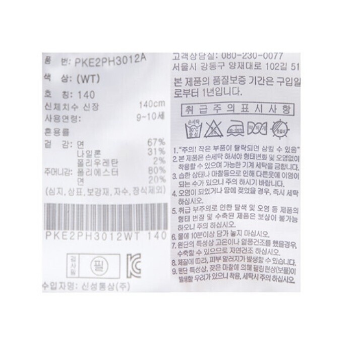 | 1. 제품 소재 (섬유의 조성 또는 혼용률을 백분율로 표시, 기능성인 경우 성적서 또는 허가서) | 상품상세참조 |