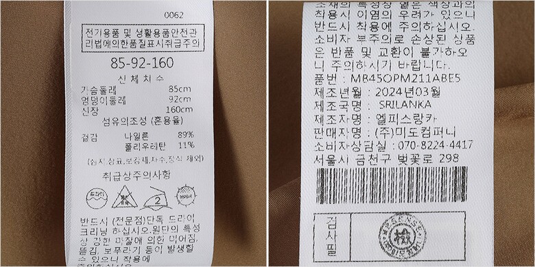 | 6. 세탁방법 및 취급시 주의사항 | 상세페이지 참조 |
