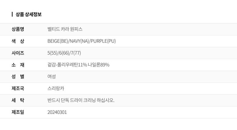 | 2. 색상 | 색상:BEIGE(BE)/NAVY(NA)/PURPLE(PU) |