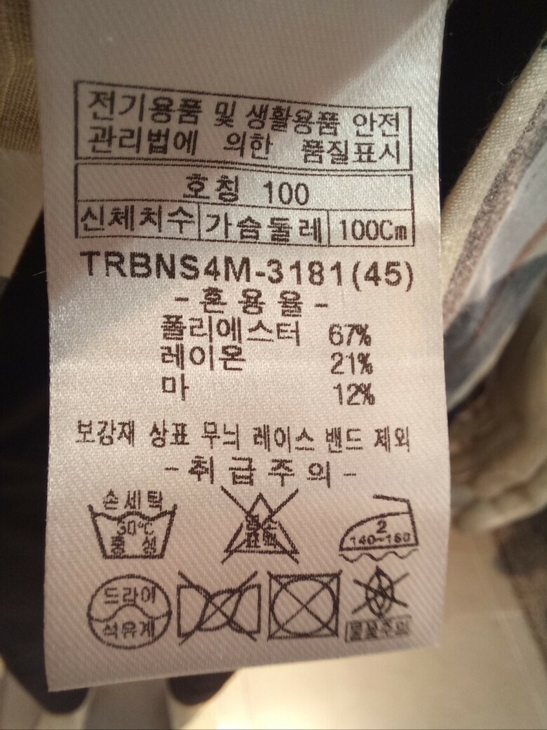 | 1. 제품 소재 (섬유의 조성 또는 혼용률을 백분율로 표시, 기능성인 경우 성적서 또는 허가서) | 폴리에스테르 67%, 레이온 21%, 마 12%, 레이스 |