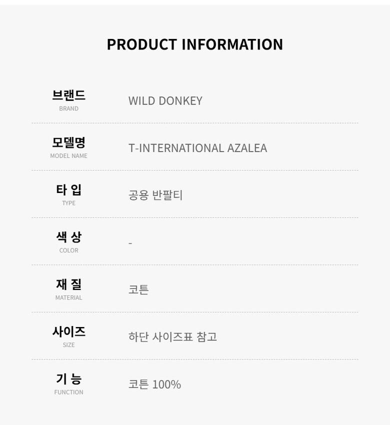 와일드동키 T-INTERNATIONAL AZALEA 공용 반팔티