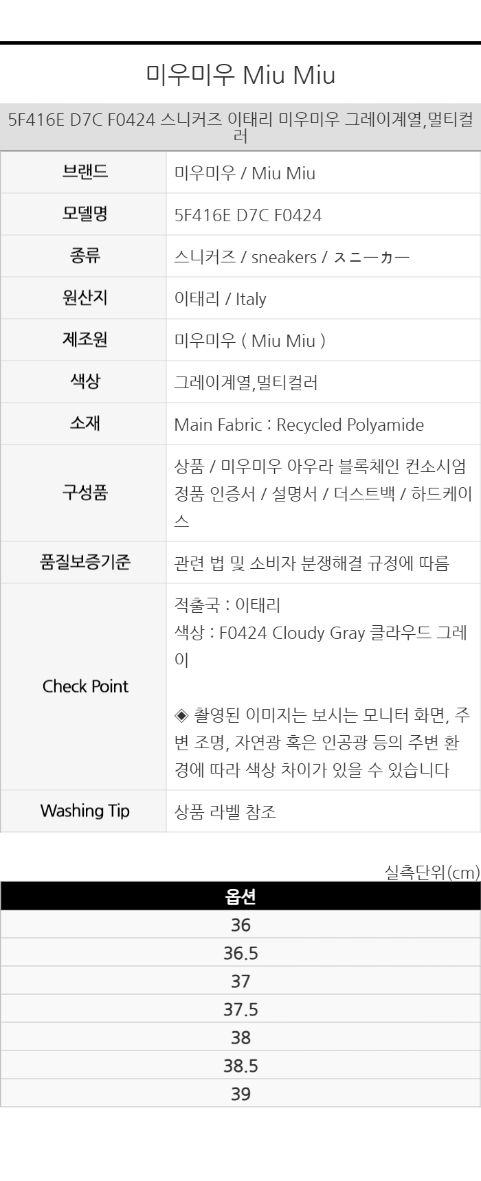 [명품] 25SS 미우미우 5F416E D7C / 타이어 발레리나 로고 스니커즈