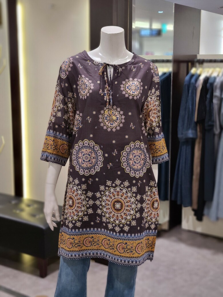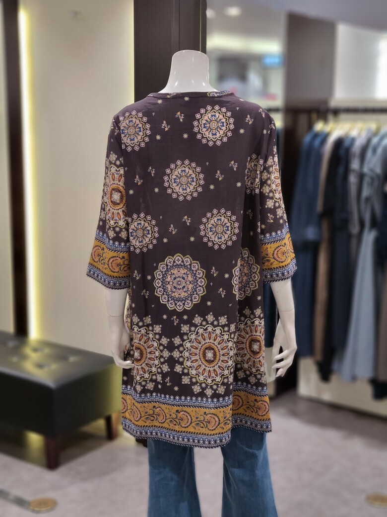 소고 라운드 에스닉프린트 7부소매 롱블라우스AJ2BA51