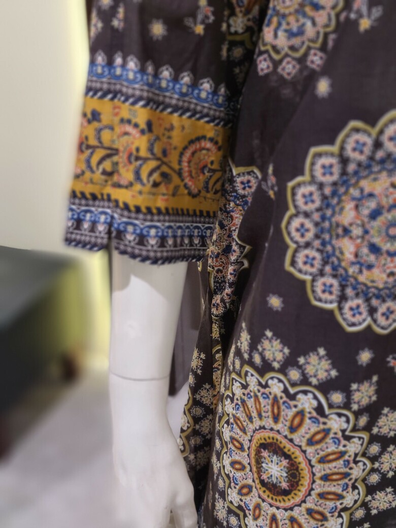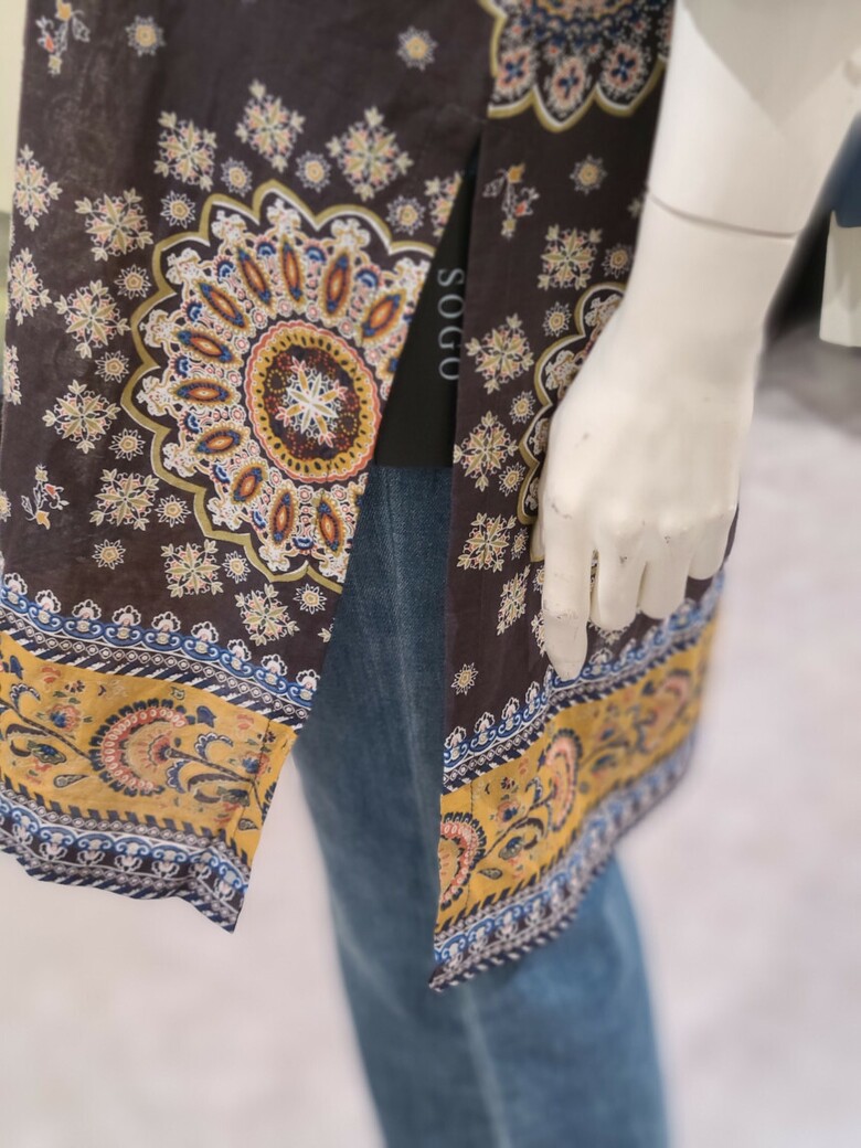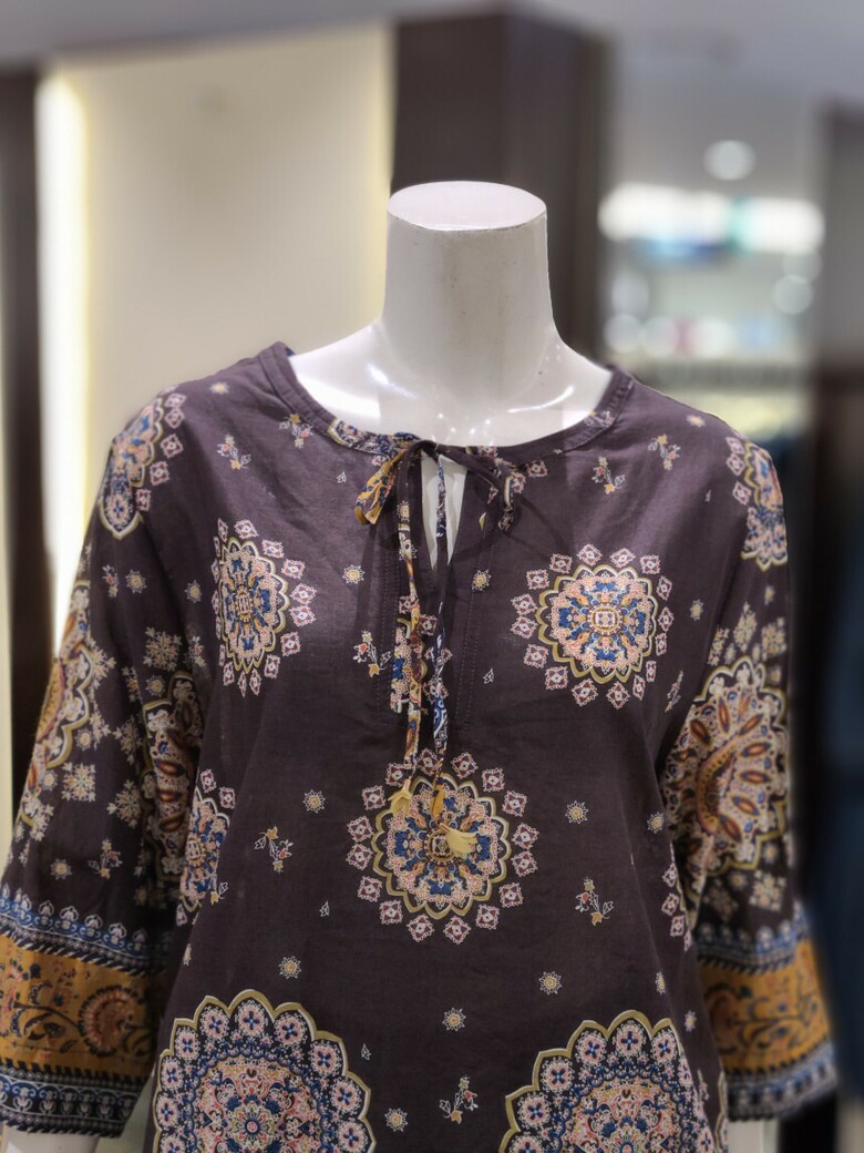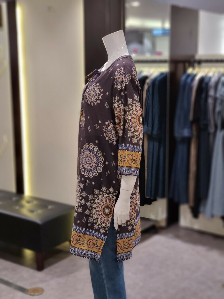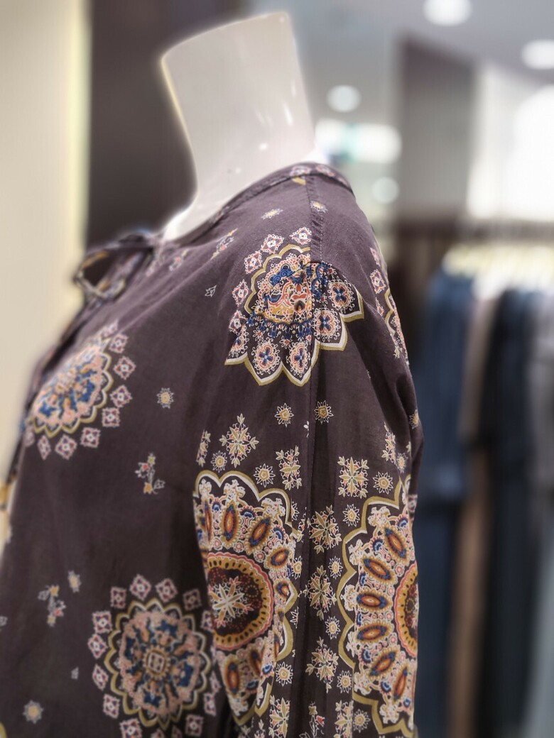 라운드넥 에스닉 프린트 롱 블라우스입니다