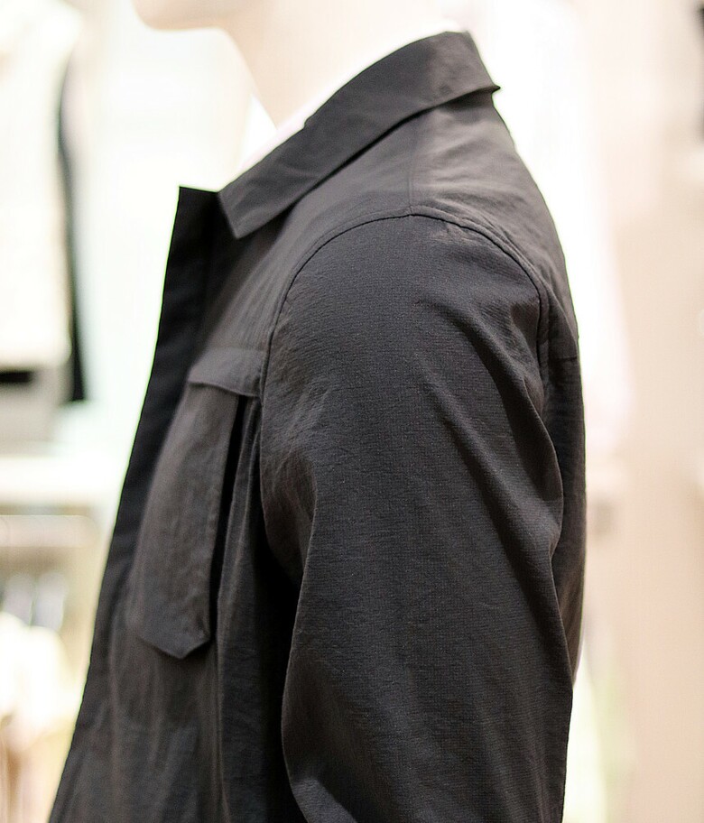 가슴 포켓 디테일과 폴로 에리형태로 캐쥬얼함을 더하고