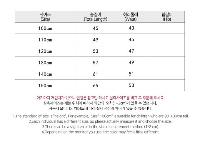 사이즈 : 100,110,120,130,140,150