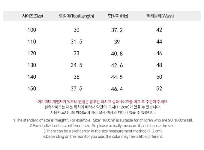 사이즈 : 100,110,120,130,140,150