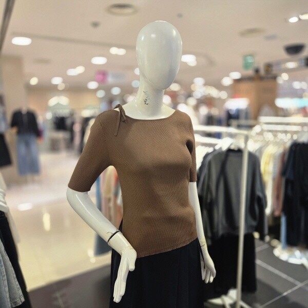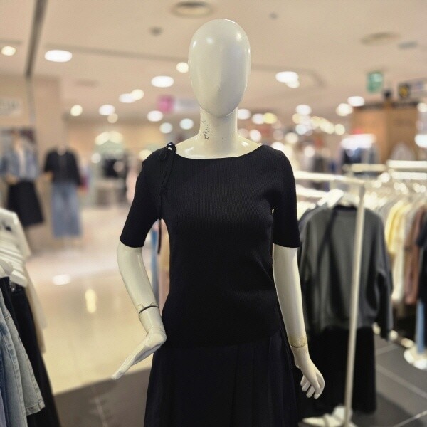 OK5MP4520과 동일 아이템으로 한쪽 어깨부분 리본을 묶어 포인트를 주는 반팔 니트 입니다.심플하면서 포인트를 주는 아이템으로 편하게 착용가능합니다.