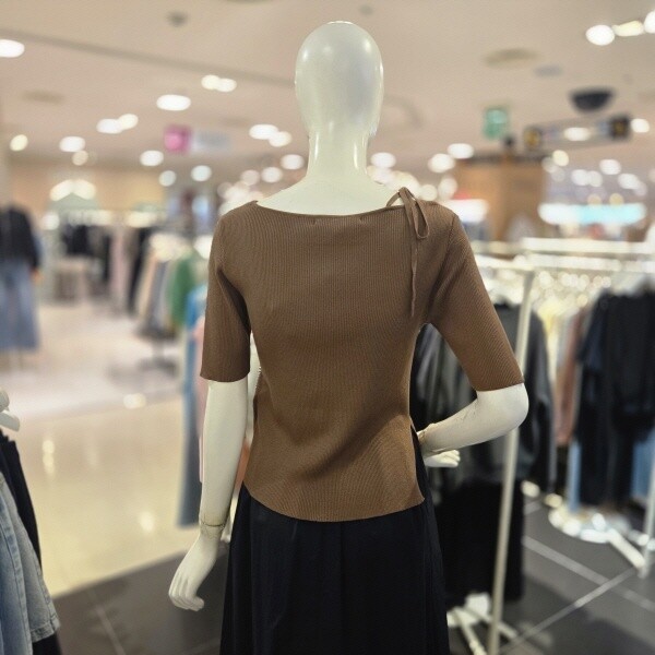 OK5MP452_언발 리본 어깨끈 반팔 니트
