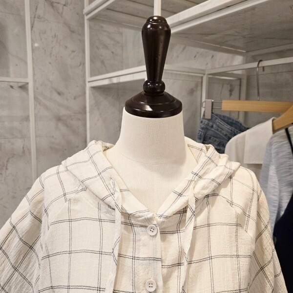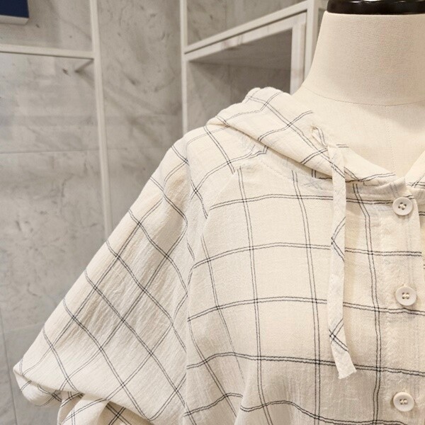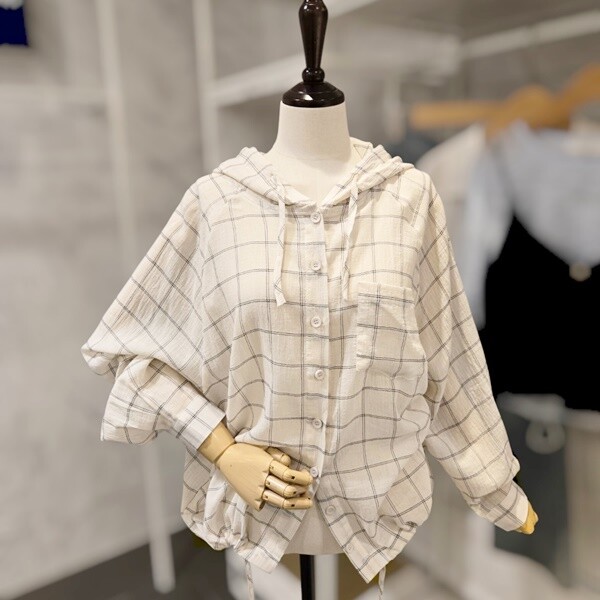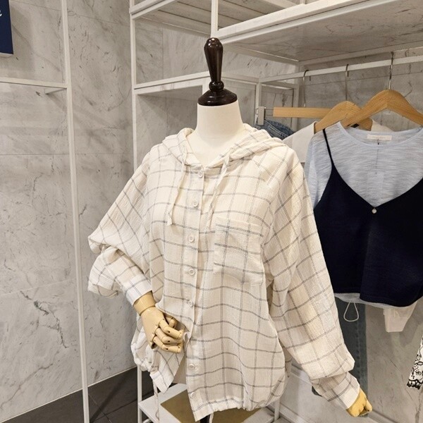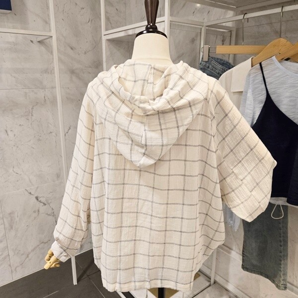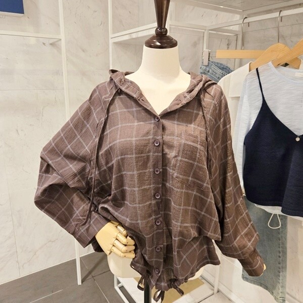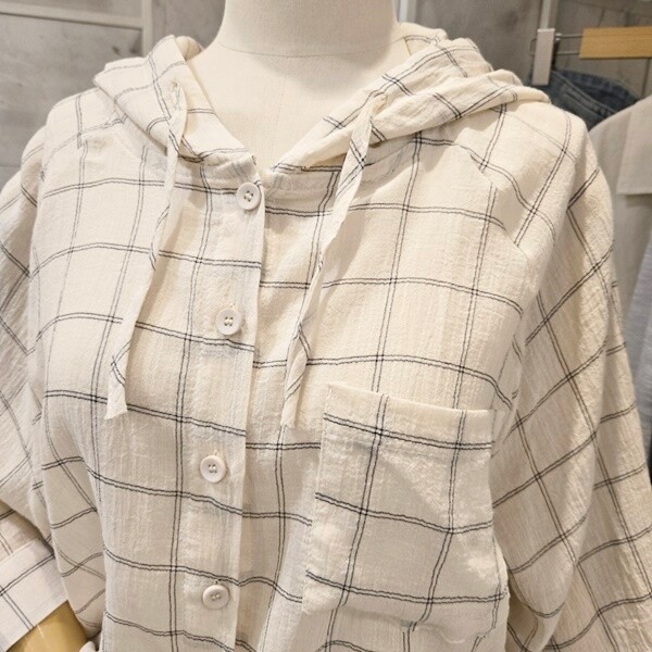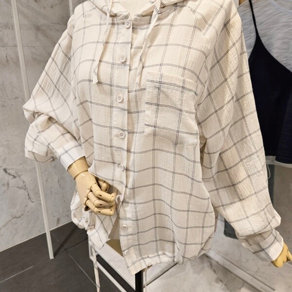 F5BBL505A_체크 후드 루즈핏 셔츠