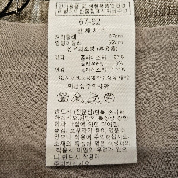 제품소재 : 겉감-폴리에스터97%, 폴리우레탄3%, 안감-폴리에스터100%
