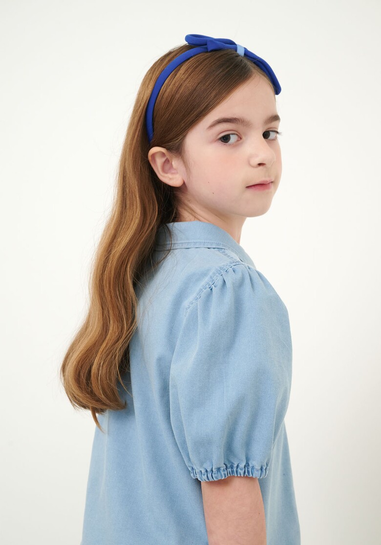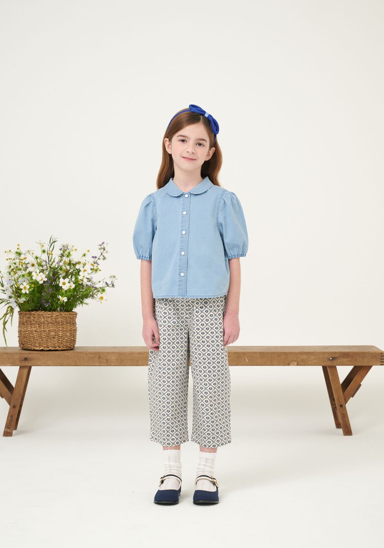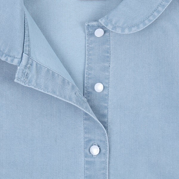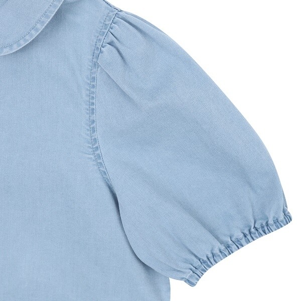 부드러운 워싱 데님 소재로 제안하는 스카이 블루 컬러의 블라우스입니다.