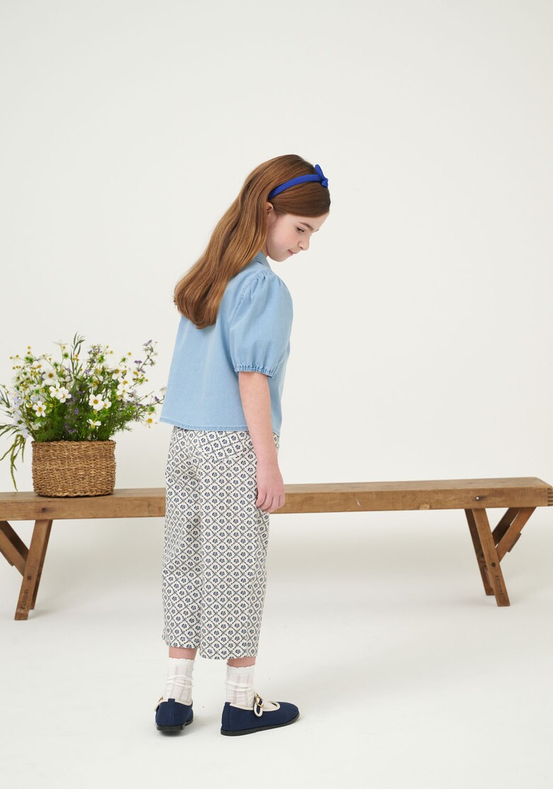 아이보리 프린트 팬츠와 매치하여 내추럴하면서 발랄한 스타일링을 연출할 수 있습니다.