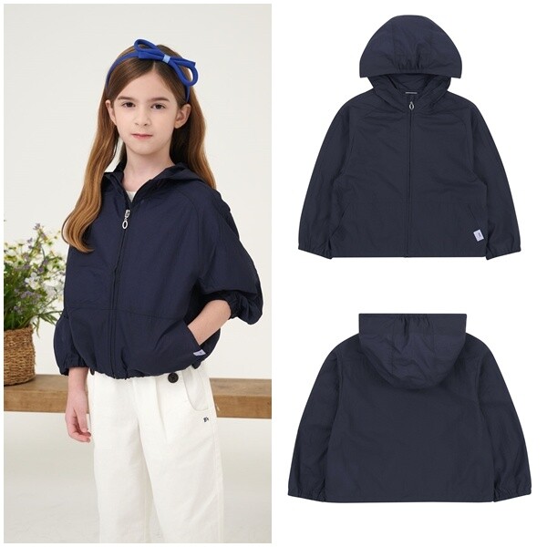선명한 네이비 컬러의 경쾌하고 발랄한 스타일링이 가능한 후드 윈드브레이커 점퍼입니다.