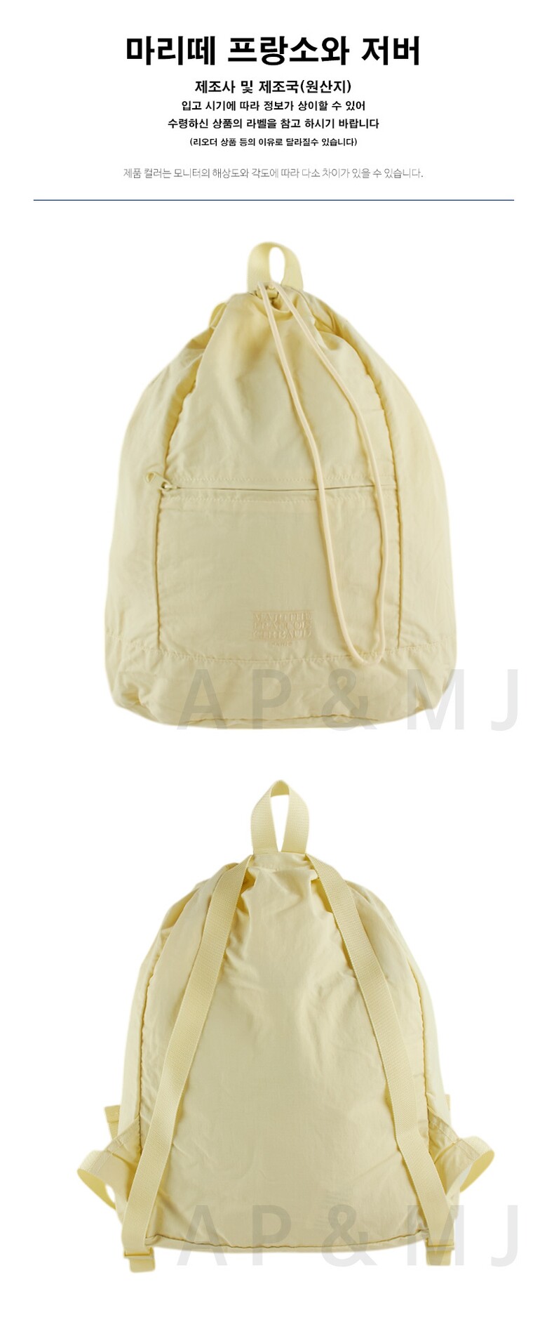 마리떼 클래식 로고 지퍼 포켓 백팩 MFG45SBG209 LYW