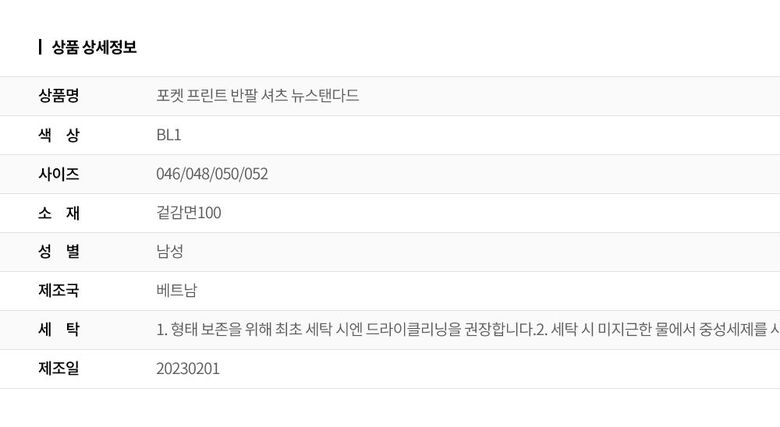 | 6. 세탁방법 및 취급시 주의사항 | 상세설명 참조 |