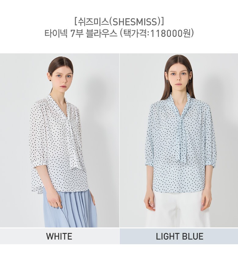 [쉬즈미스(SHESMISS)] 타이넥 도트 7부소매 블라우스 (택가격: 118000원)