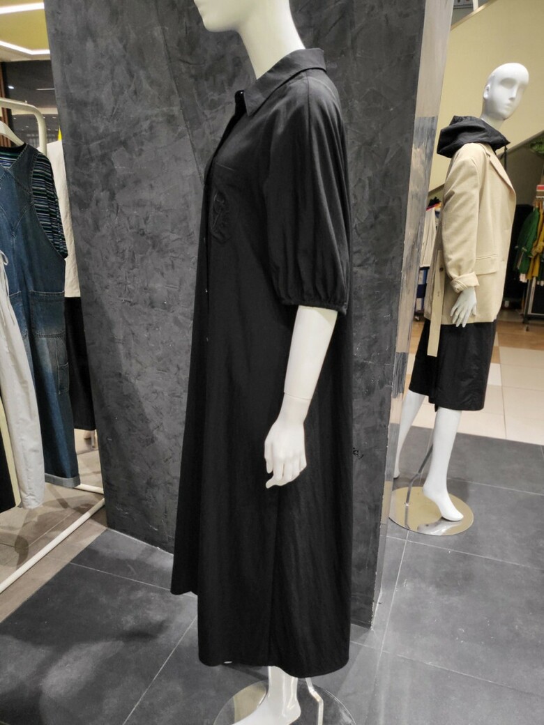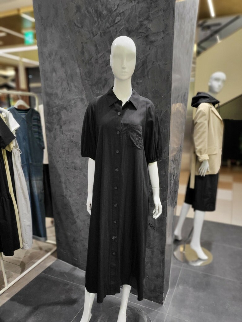 긴 기장과 여유로운 A라인 실루엣이 세련되면서도 여성스러운 분위기를 연출합니다.