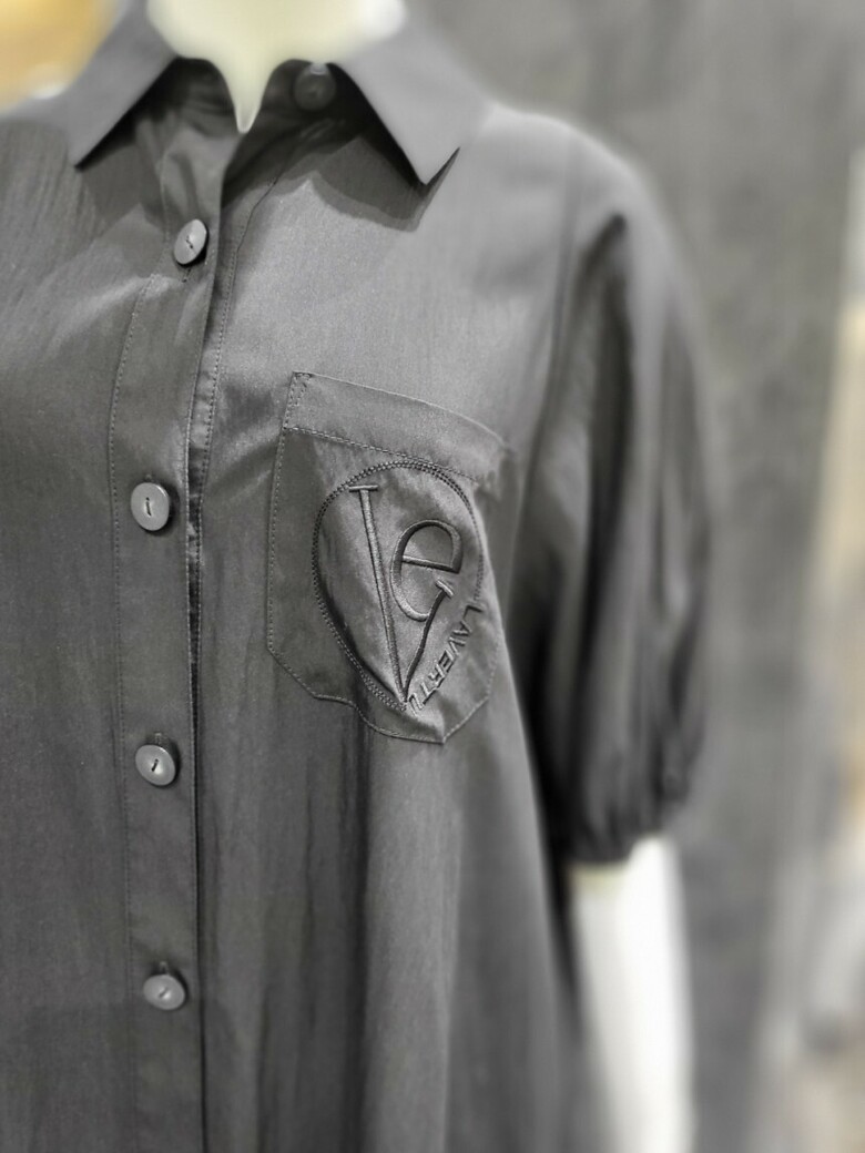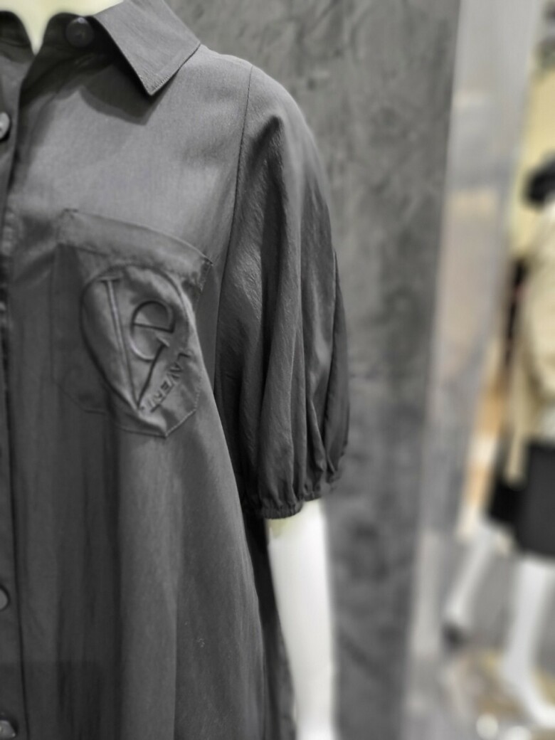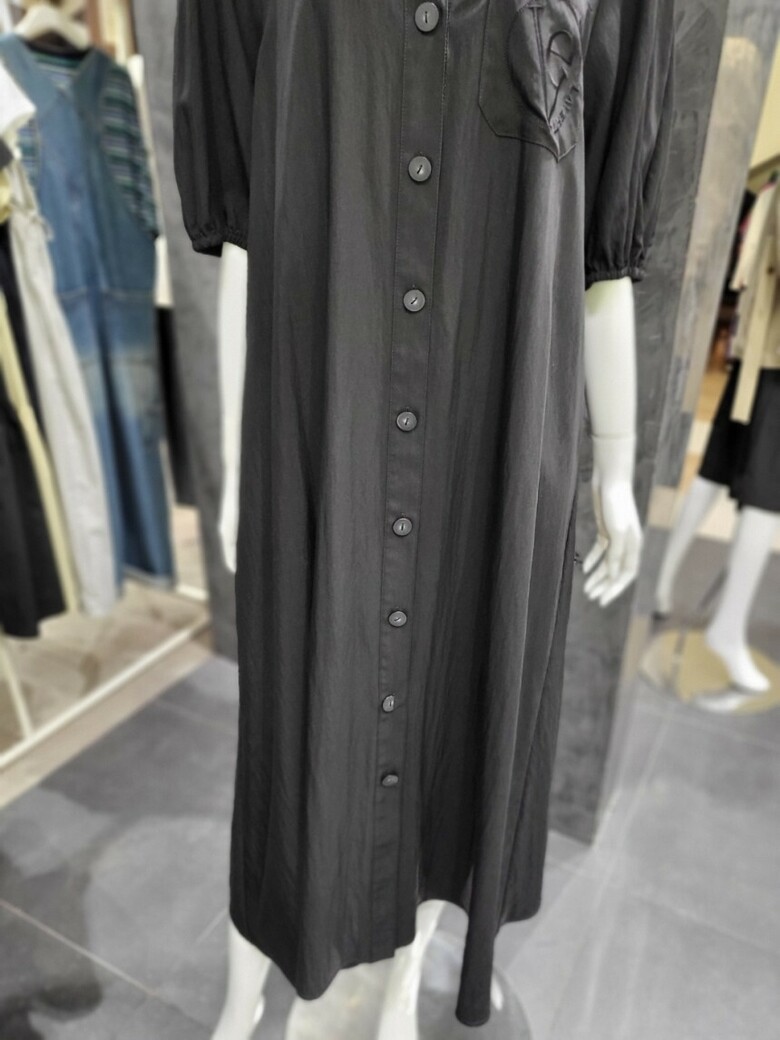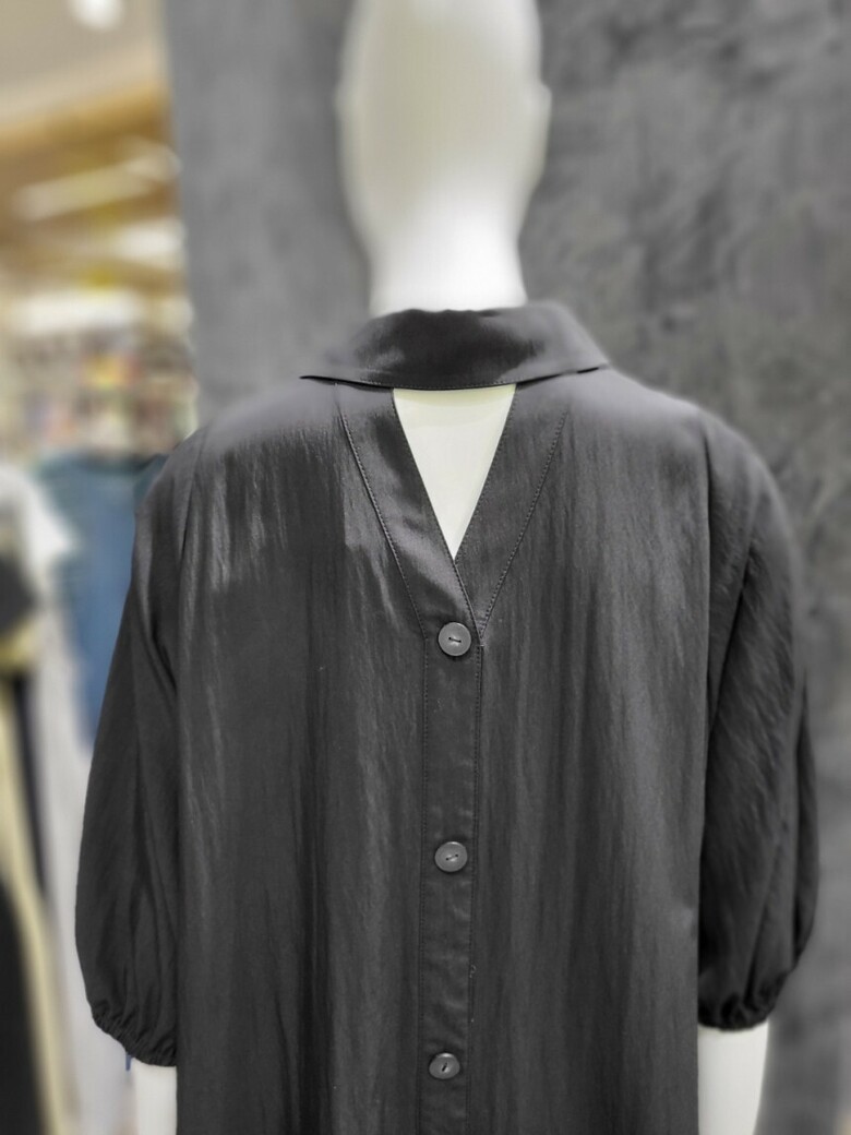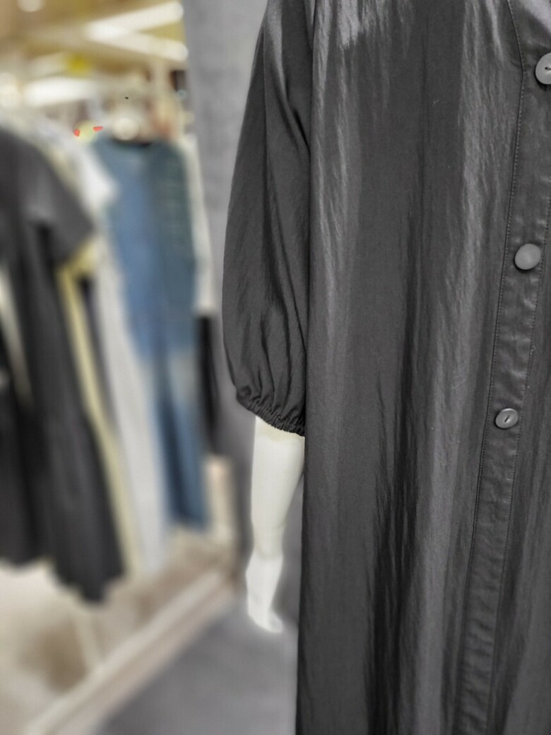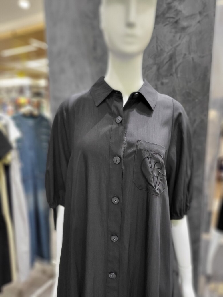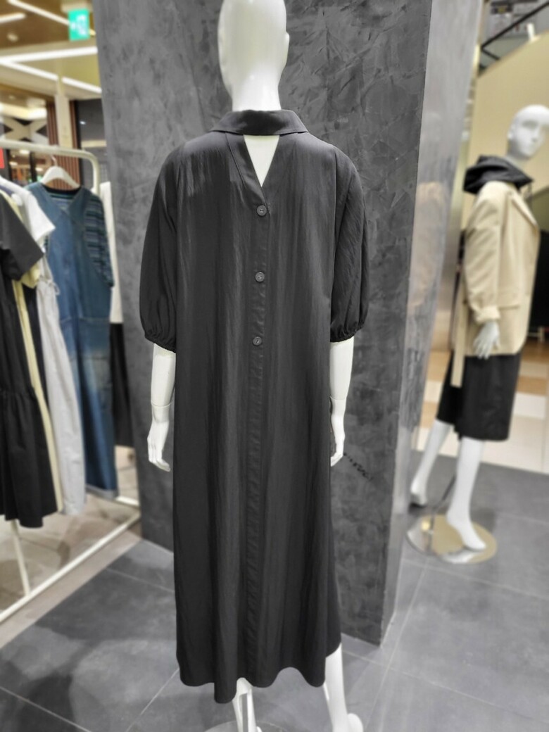 고급스러운 레이온 혼방 소재로 제작된 셔츠 원피스입니다.