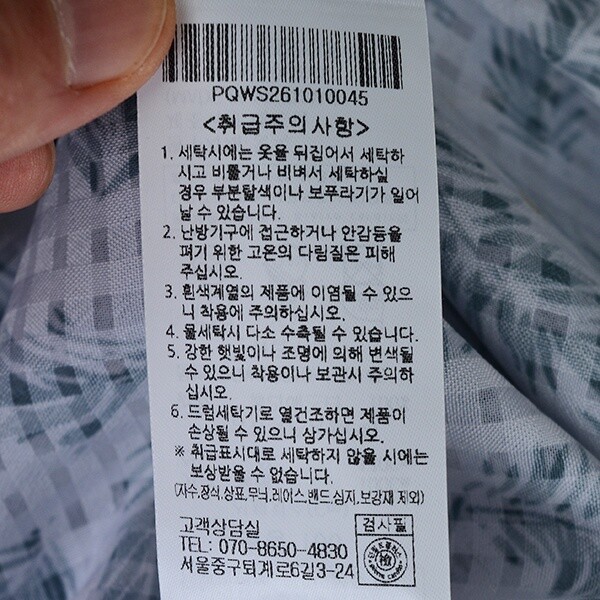 세탁방법 및 취급시 주의사항 : 본 상품 케어라벨 참조