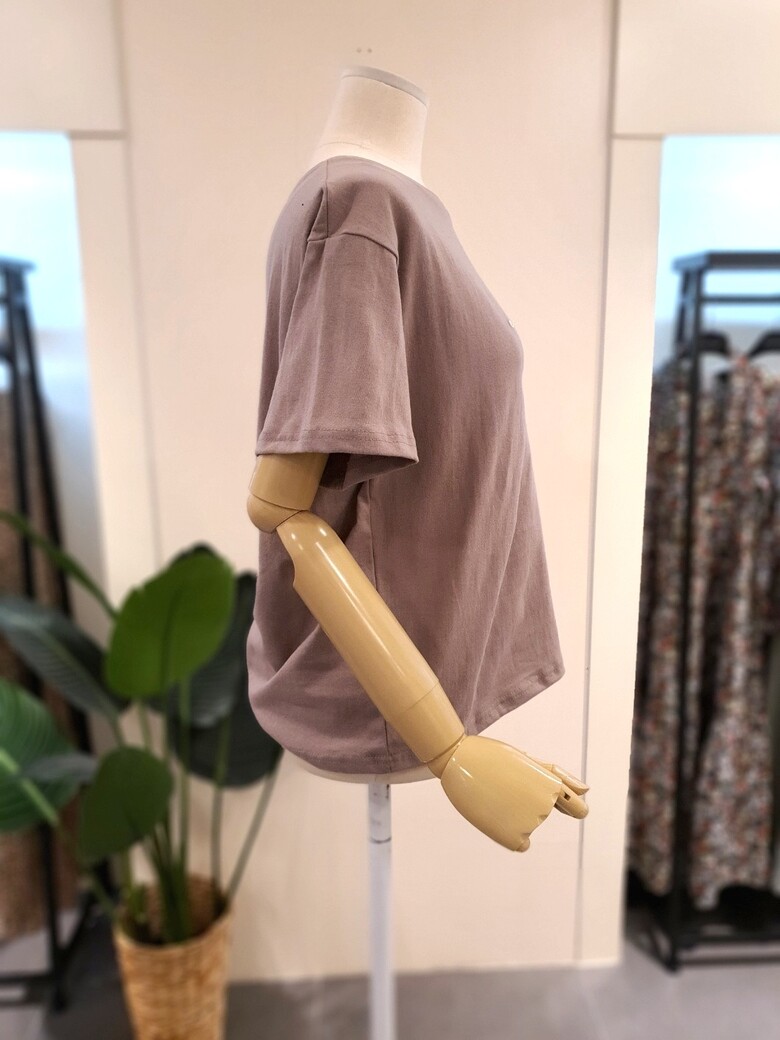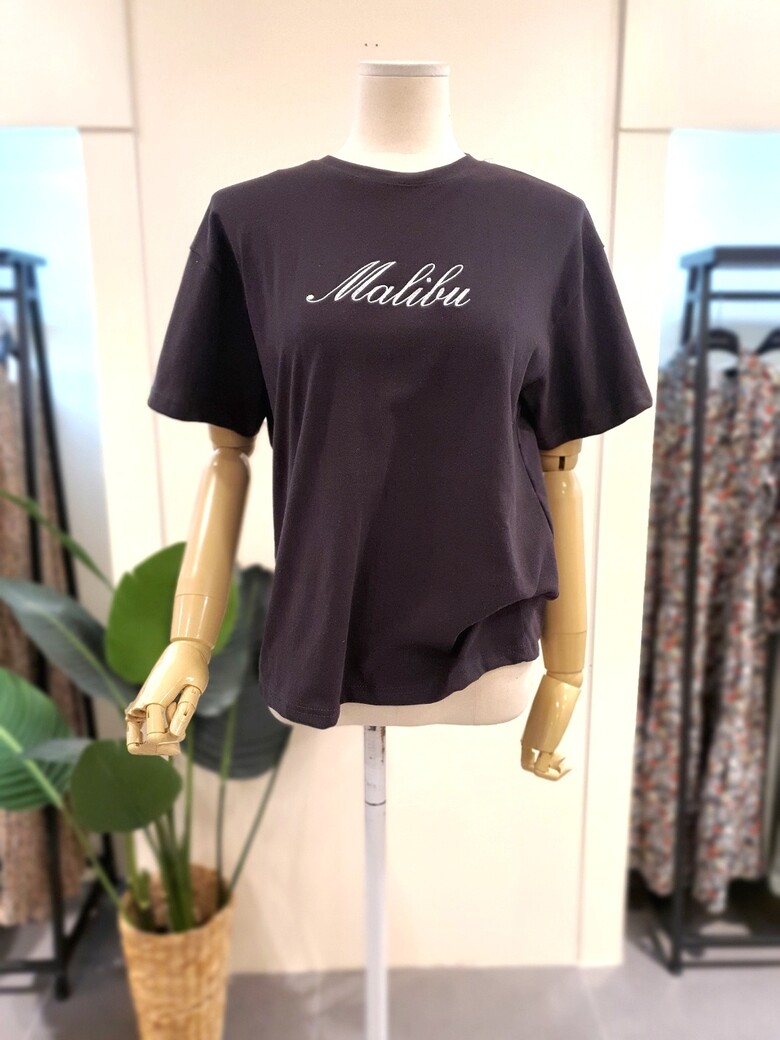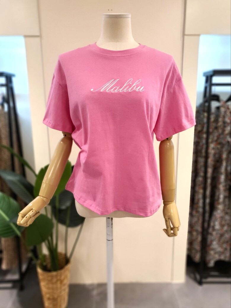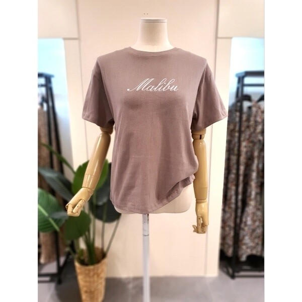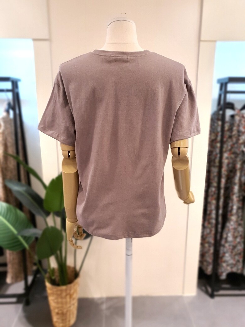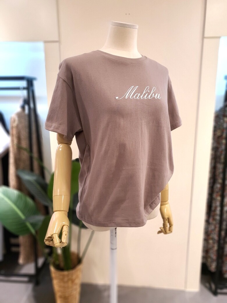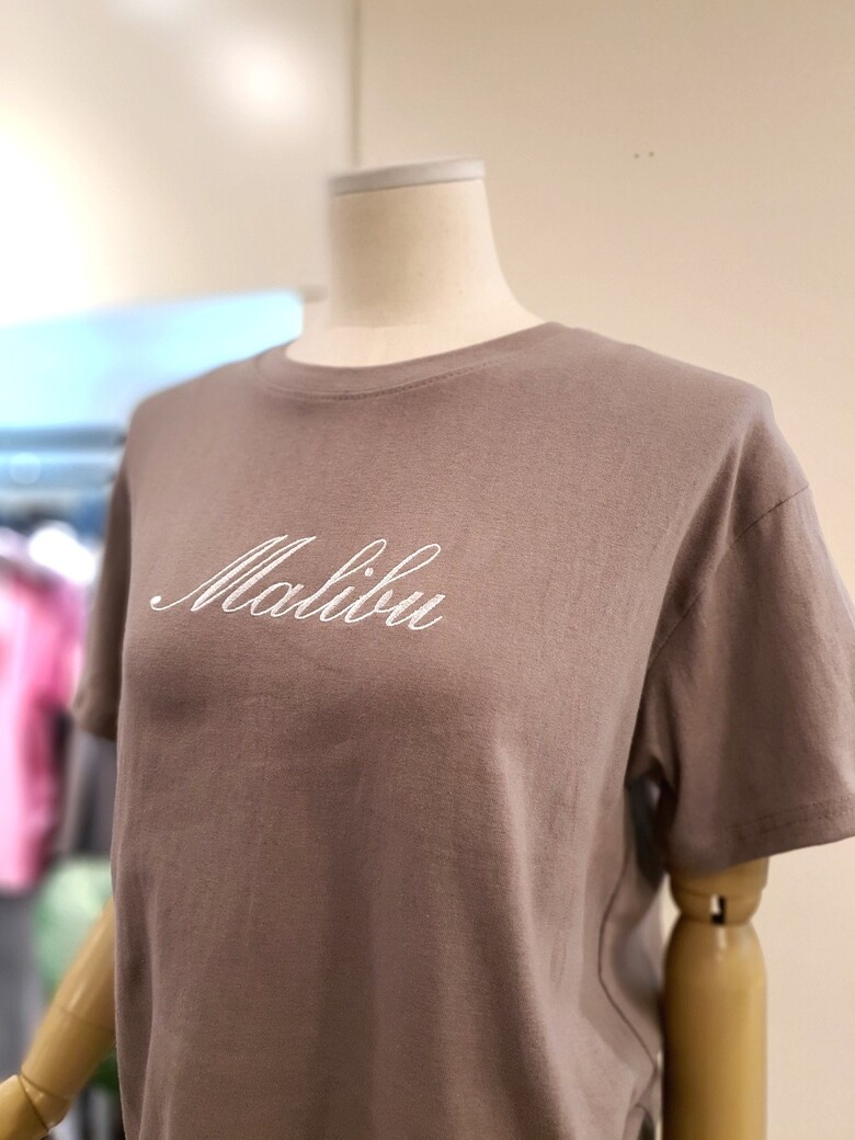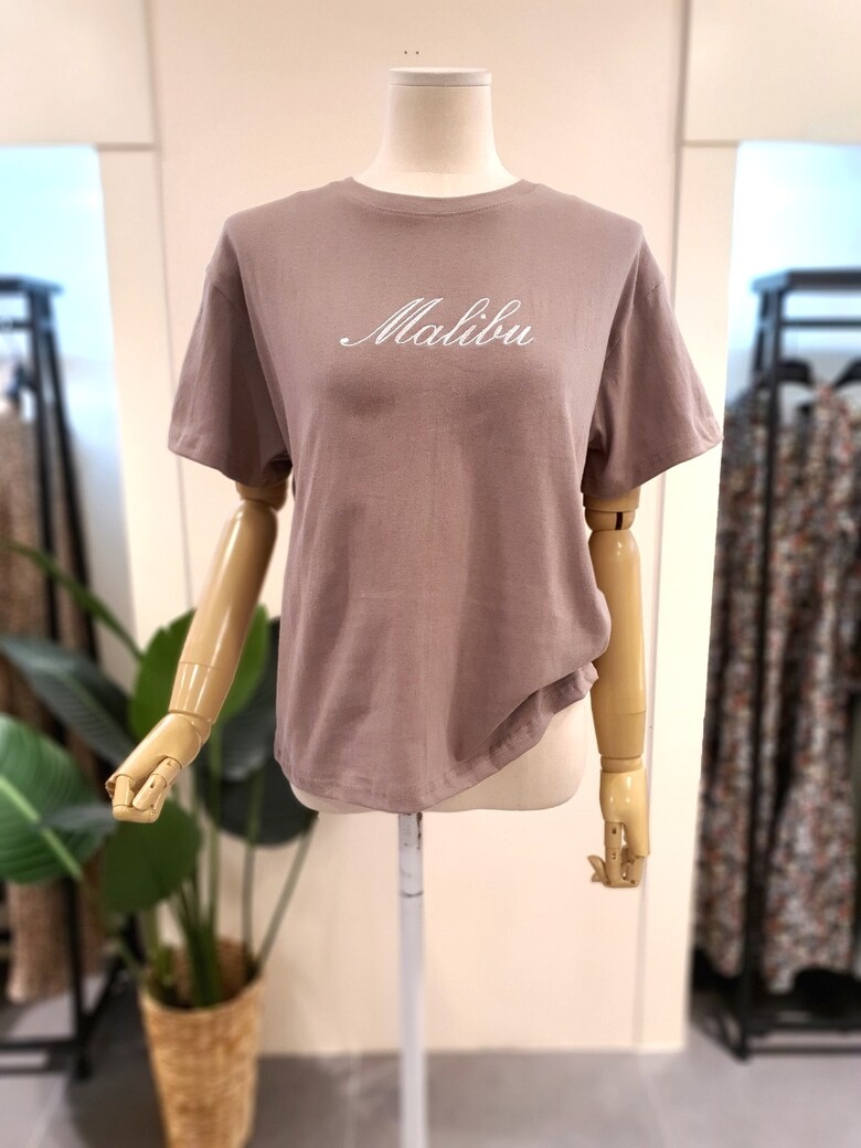 KKTSP413BR_말리부 자수 반팔 티셔츠 브라운