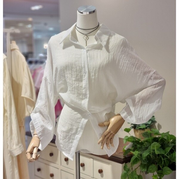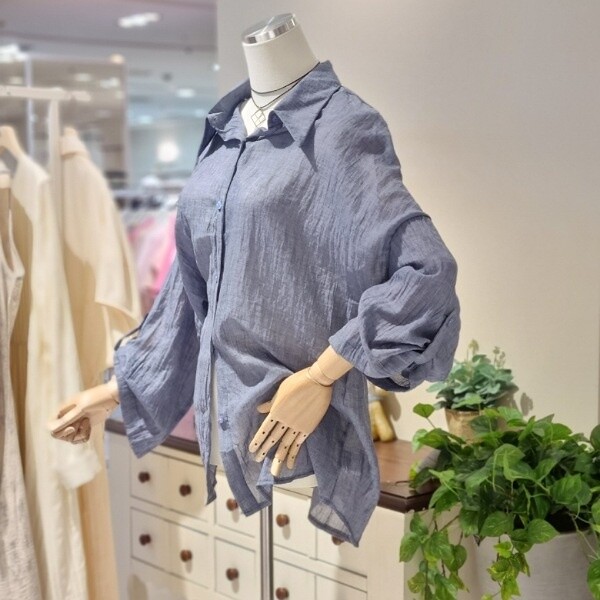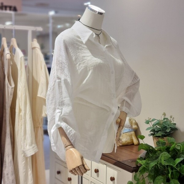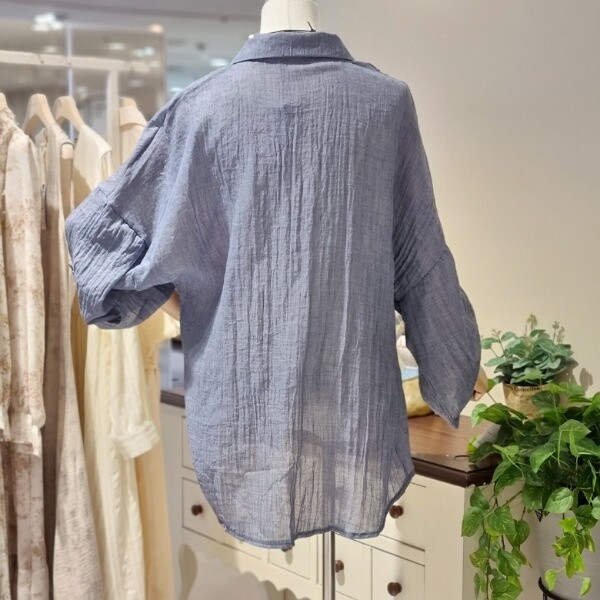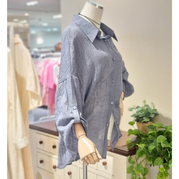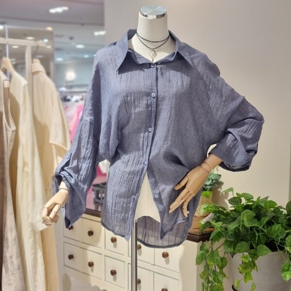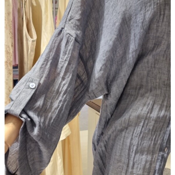 거즈 느낌의 가볍고 부드러운 소재 와이드 7부소매의 롤업 시원하게 착용 좋음
