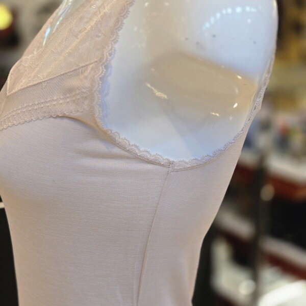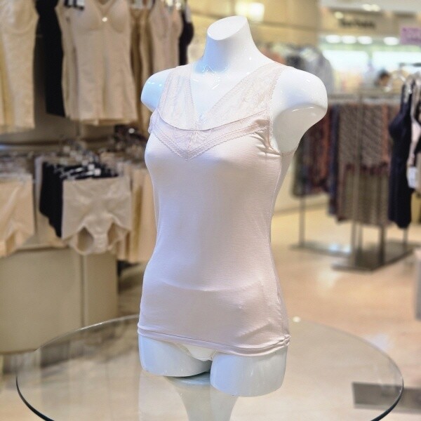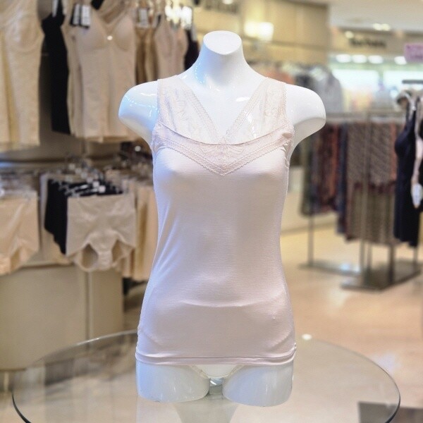 인견?민소매 런닝?? 냉감효과와 찰랑거리는 드레이프성이 우수한 인견소재의 민소매?런닝으로 목둘레와 가슴 상변에 세련된?레이스를 매칭하여 좀 더 화려한 감각으로 시원하게 착용 할수 있는 제품