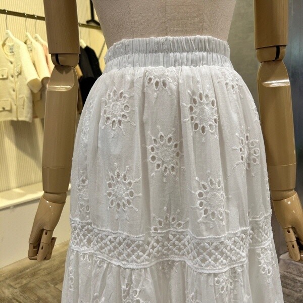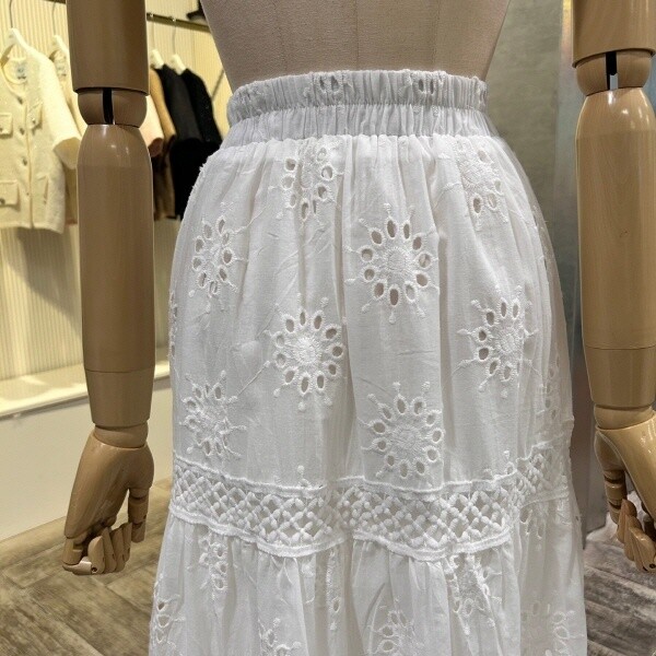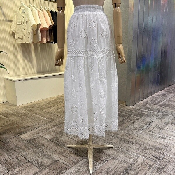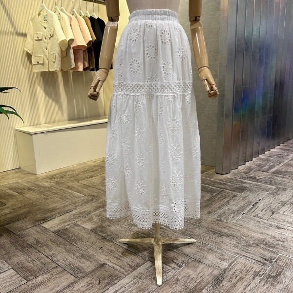 2025년 s/s 신상 펀칭 레이스 자수 롱 스커트 입니다. 사랑스러운 디자인이 포인트 아이템 입니다.?