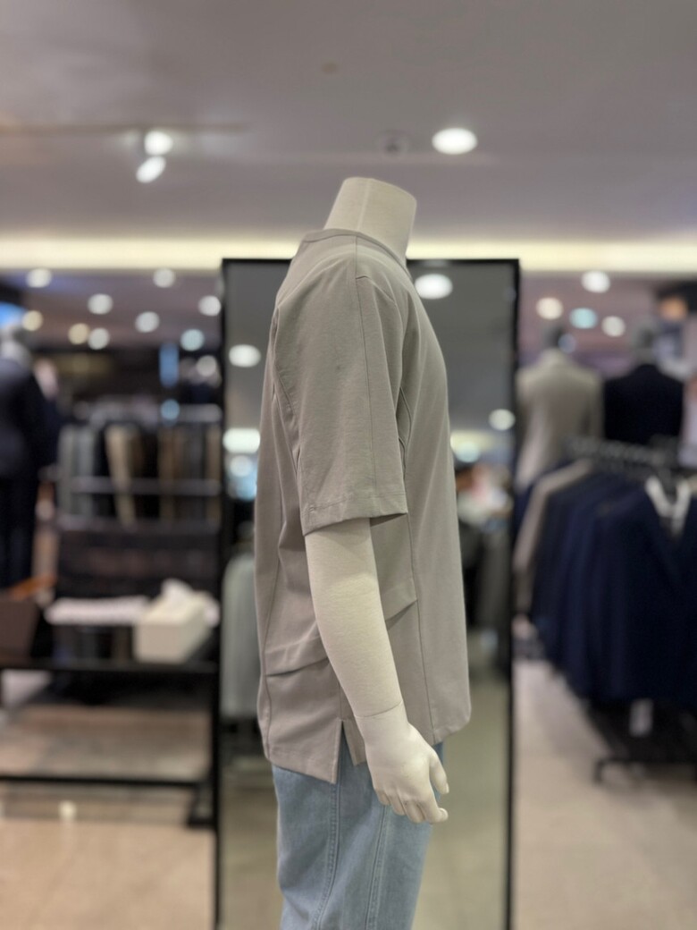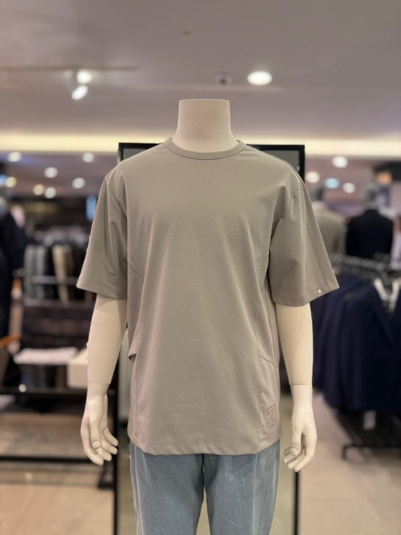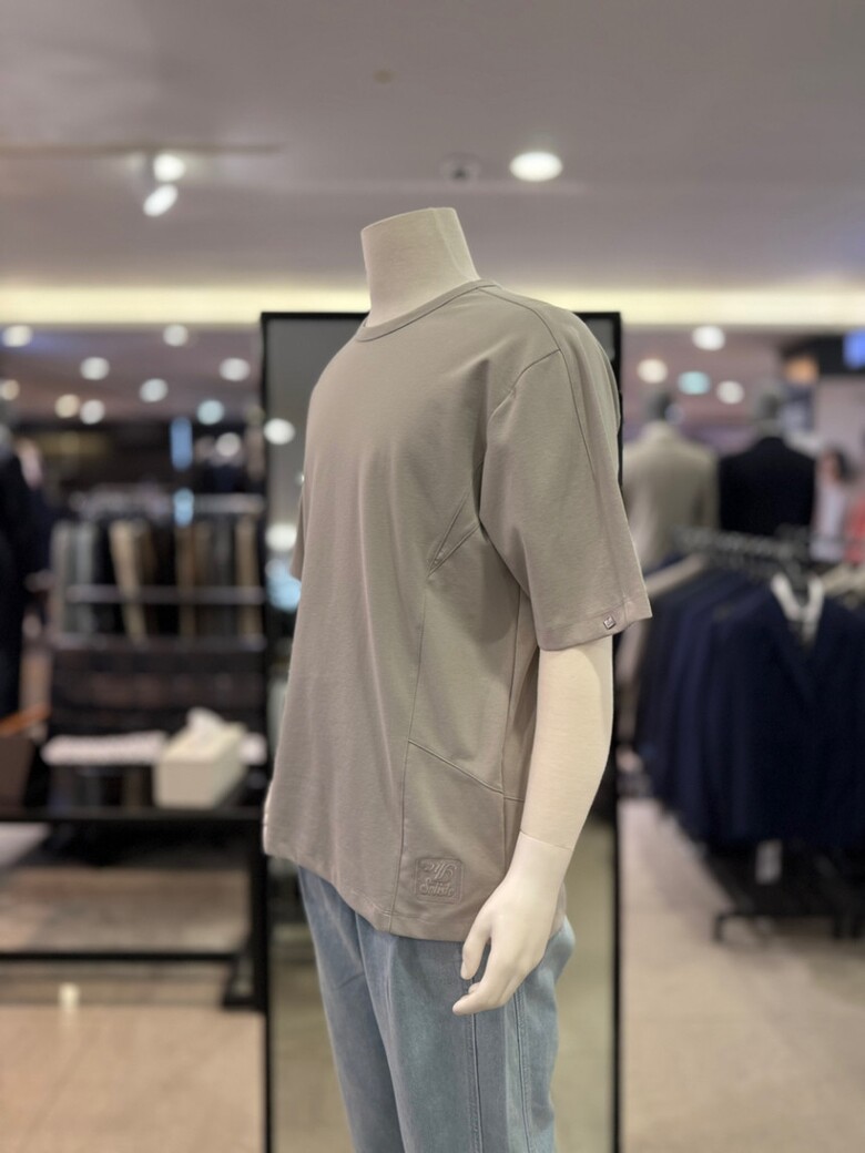 리버클래시 그레이 세미오버핏 라인절개 포인트 반팔 티셔츠 LLM41581