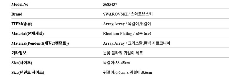 스와로브스키 목걸이 5685437 눈꽃 플라워 귀걸이 세트 여성목걸이 당일발송