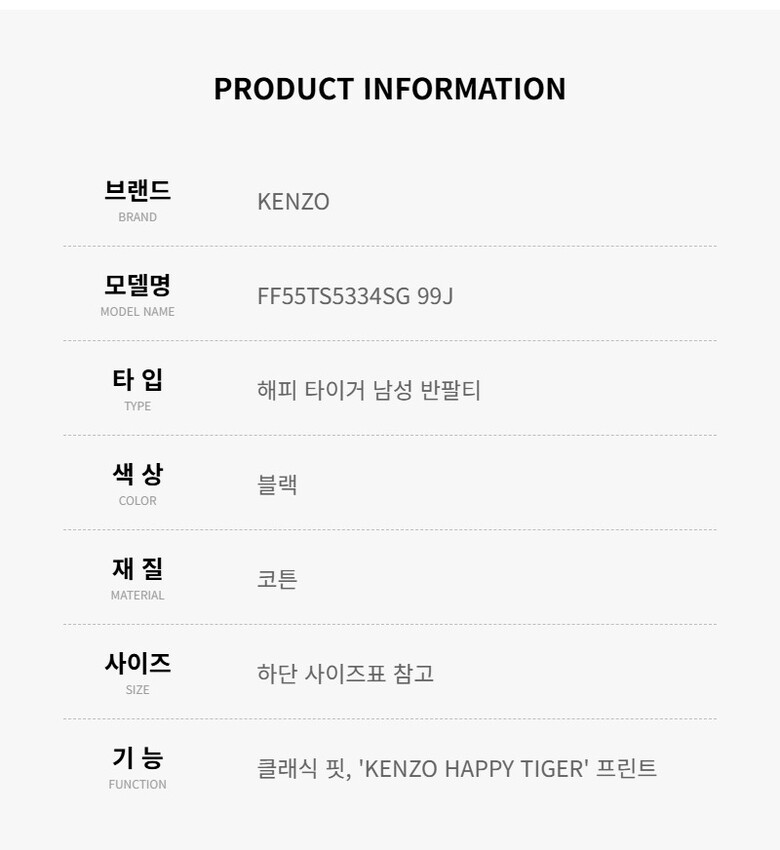 겐조 반팔 FF55TS5334SG 99J 해피 타이거 남성반팔티 당일발송