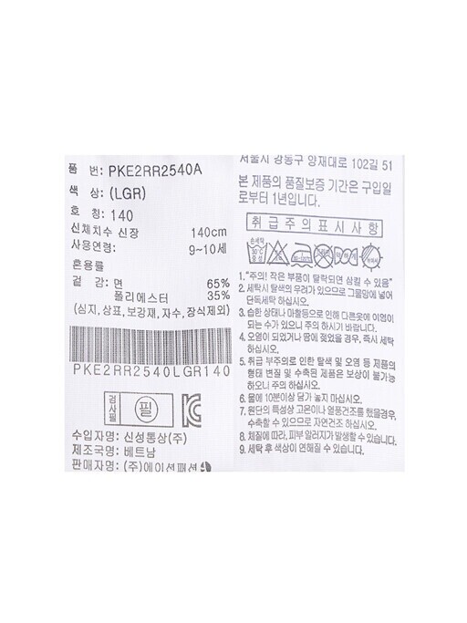 | 1. 제품 소재 (섬유의 조성 또는 혼용률을 백분율로 표시, 기능성인 경우 성적서 또는 허가서) | 상품상세참조 |