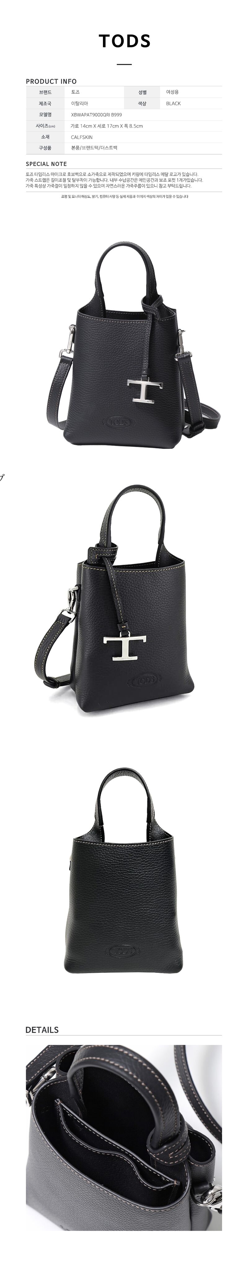 [명품] 25SS 토즈 타임리스 마이크로 레더 토트백 블랙 XBWAPAT9000 I B999