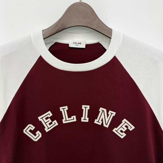 [명품] 25SS 셀린느 로고 플로킹 루즈 반팔티 / 버건디 RX003671Q CAD9