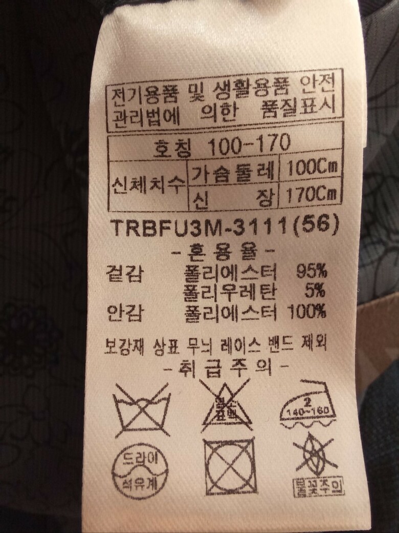 | 1. 제품 소재 (섬유의 조성 또는 혼용률을 백분율로 표시, 기능성인 경우 성적서 또는 허가서) | 겉감:폴리에스테르 95%, 폴리우레탄 5% / 안감:폴리에스테르 100% |