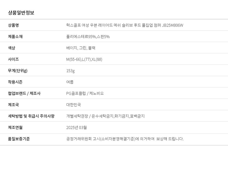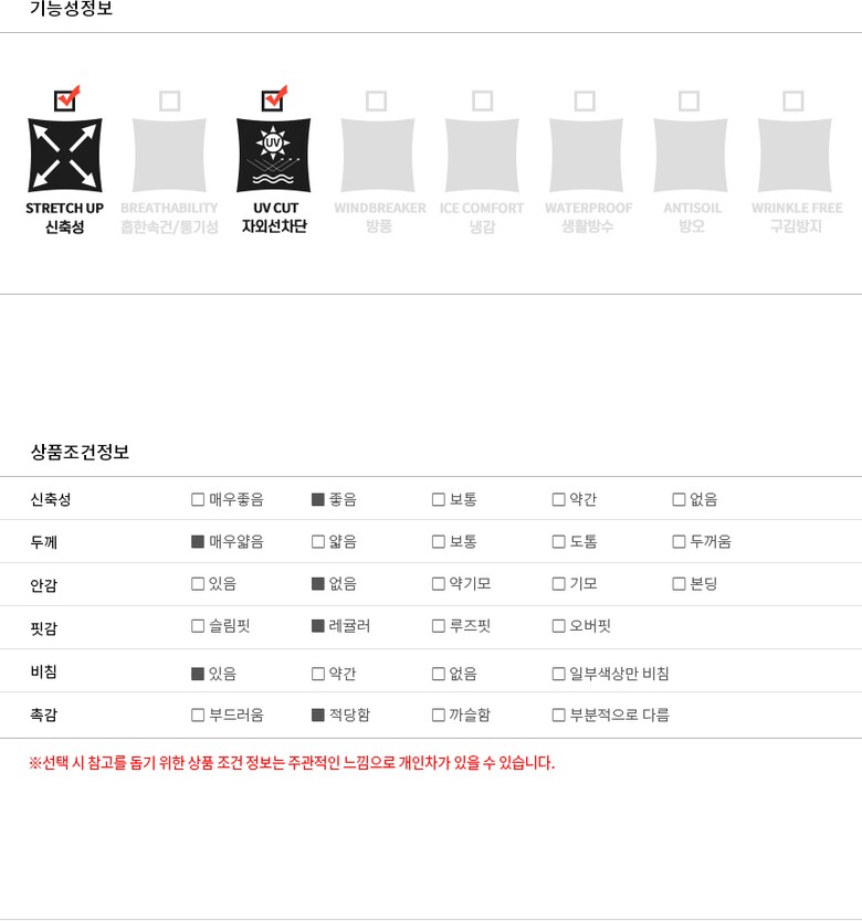 1. 제품 소재 (섬유의 조성 또는 혼용률을 백분율로 표시, 기능성인 경우 성적서 또는 허가서) 폴리에스테르95%,스판5%